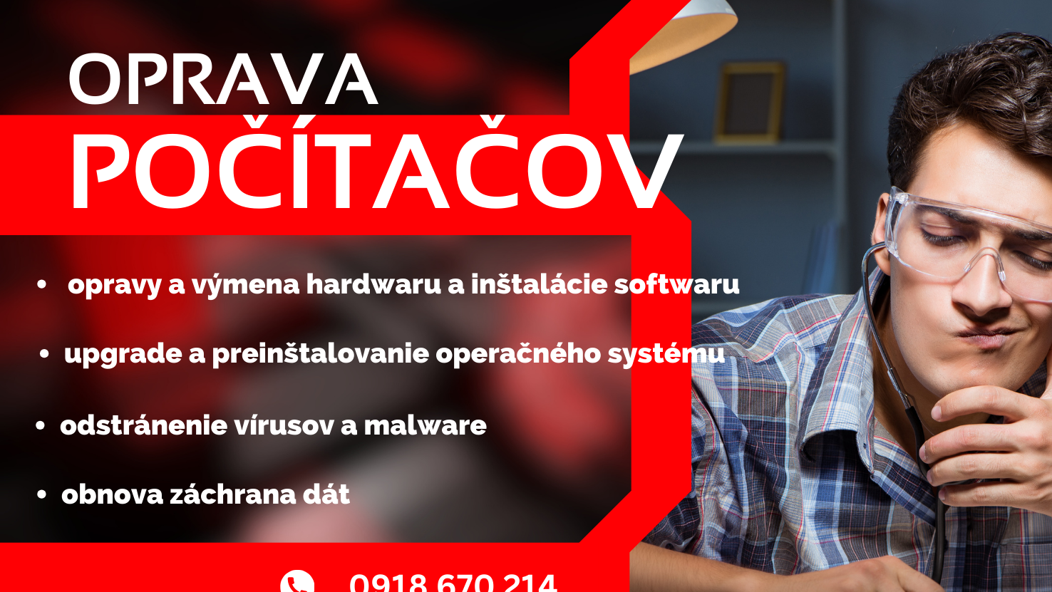 Vitajte na našej stránke, kde sa špecializujeme na opravu a servis notebookov, mobilných telefónov a výpočtovej techniky. Rozumieme, že mobil je pre vás dôležitý každý deň – na prácu, komunikáciu aj zábavu. Preto sa snažíme väčšinu bežných opráv vybaviť v čo najkratšom čase, často už v ten istý deň. Ak je to možné, ponúkneme vám aj viacero variantov opravy podľa vášho rozpočtu.